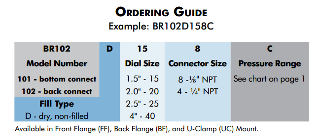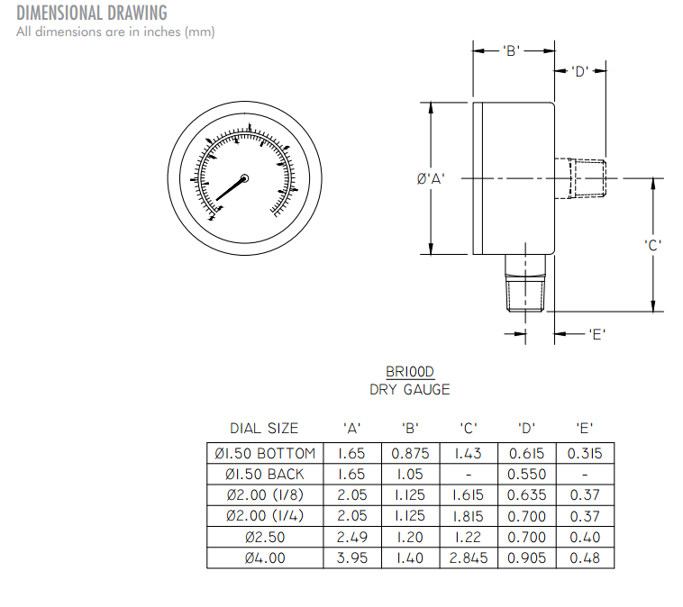 • Dial Sizes: 1½”, 2″, 2½”, and 4″