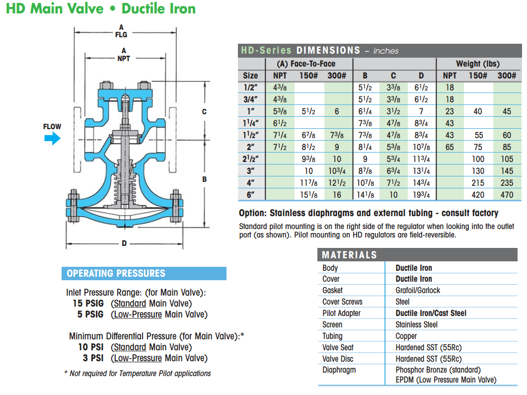 HD PILOT-OPERATED REGULATOR DUCTILE IRON 6″ (150#FLG) HD PILOT-OPERATED REGULATOR DUCTILE IRON