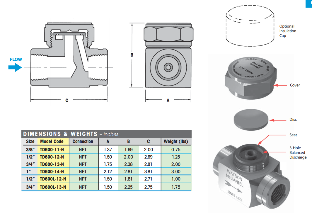 Thermodynamic Steam Trap 1/2″ (NPT) TD600 THERMODYNAMIC STEAM TRAP (STANDARD) (0-600 PSI)