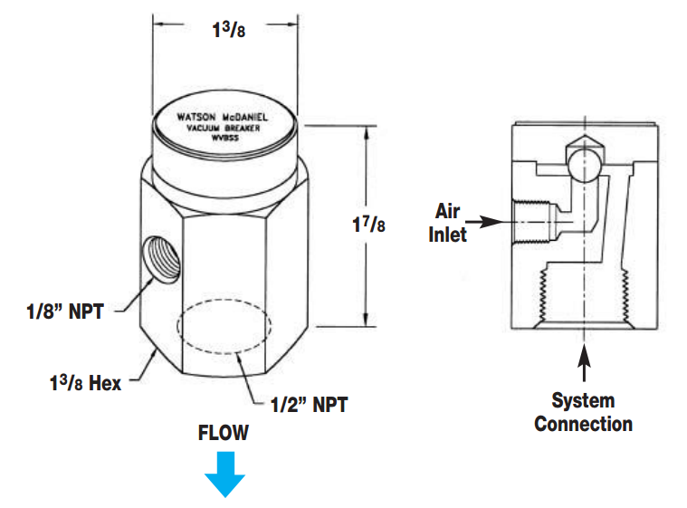 Vacuum Breaker 1/2″ (NPT) WVBSS VACUUM BREAKER (STAINLESS STEEL) (0-300 PSI)